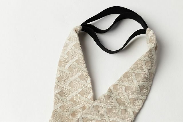 幾何学な模様が刺繍でほっくりと重ねられていて、モードでいてゴージャス。クラシカルでヨーロピアンなテイストも感じさせてくれるレース素材だから、帯揚げがわりにちらりと見せても素敵。コーデ力をあげてくれる、1本です。