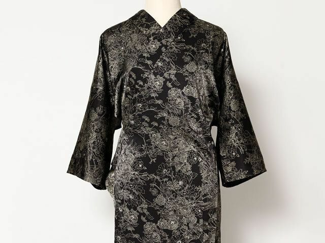 エレガントで、みているだけでもうっとりしてしまいそうな美しい生地を、大胆に襦袢にしてしまいました。