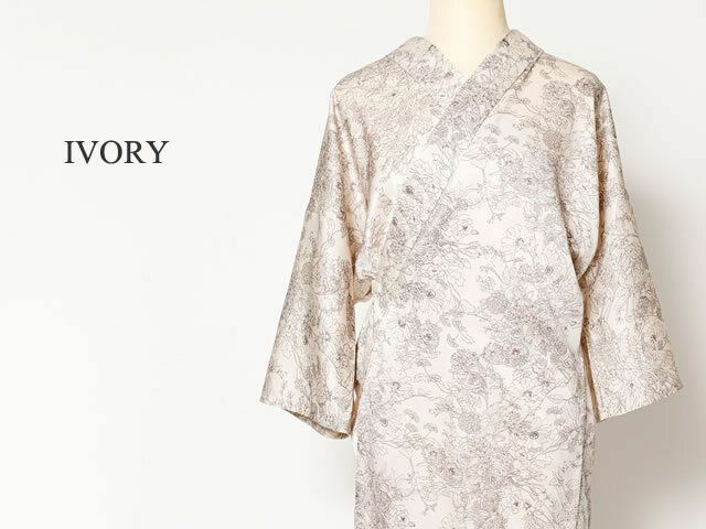 優しいアイボリーに、茶色の線画。繊細な印象、という点でいえば3色の中で一番かもしれません。お肌の色と優しく馴染むアイボリーだから、色柄の襦袢は初めてとか、まずはベーシックに使える色柄を、という方におすすめの1着です。
