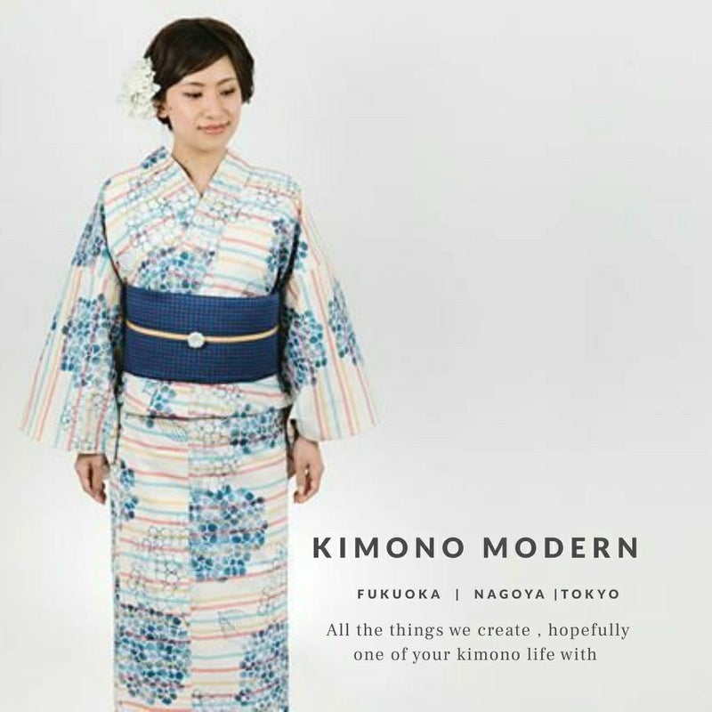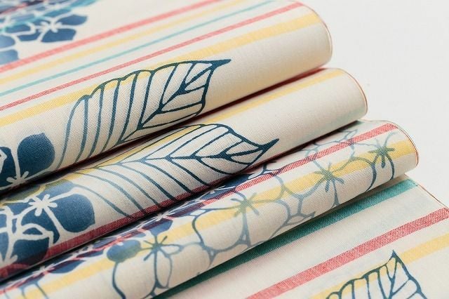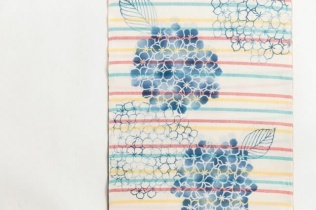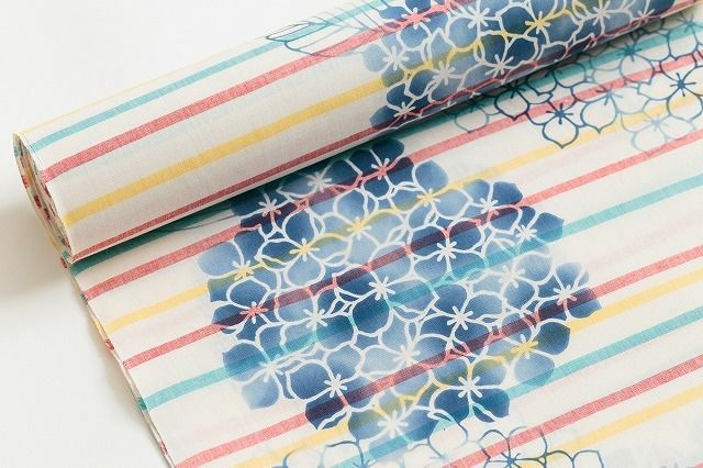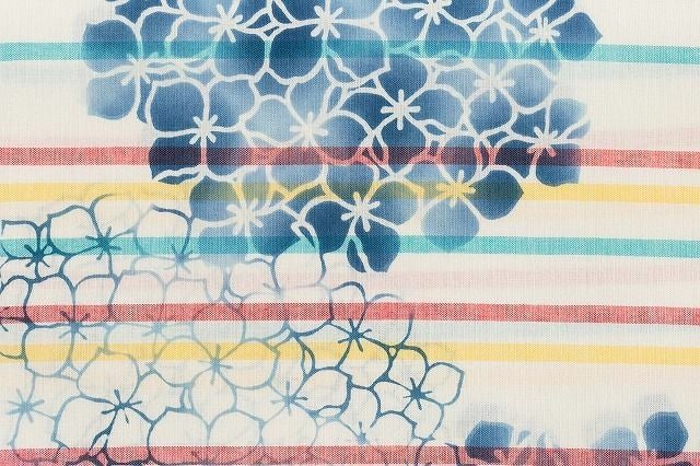 <在庫限り/再販無し>【浴衣】本格派!注染ゆかた-マルチボーダー紫陽花(浜松本染・綿100%・Basic&Free・水通し済み・別送品)