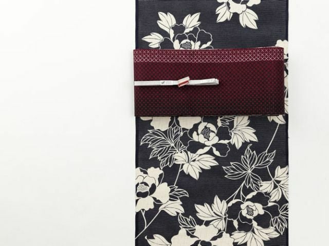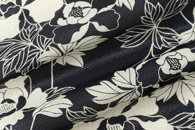 クラシカルな牡丹を大胆にデザインした、甘くなりすぎずモードに装うことができる大人の花柄浴衣。
