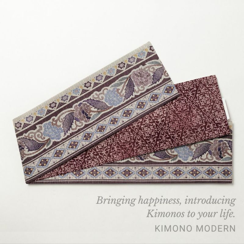 3. <召しませ花>リバーシブル半幅帯ー葡萄献上(絹75%)