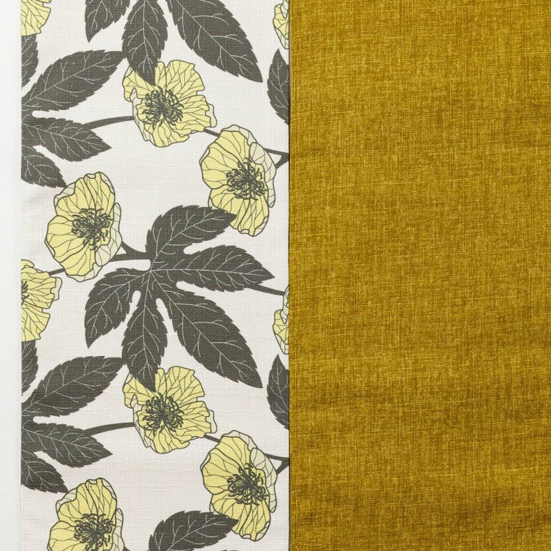 ノスタルジックなボタニカル柄の表面に対して、裏地はマスタードのような深くくすみがかったニュアンスカラー。木綿の素朴な素材感がニュートラルに着物とマッチします。