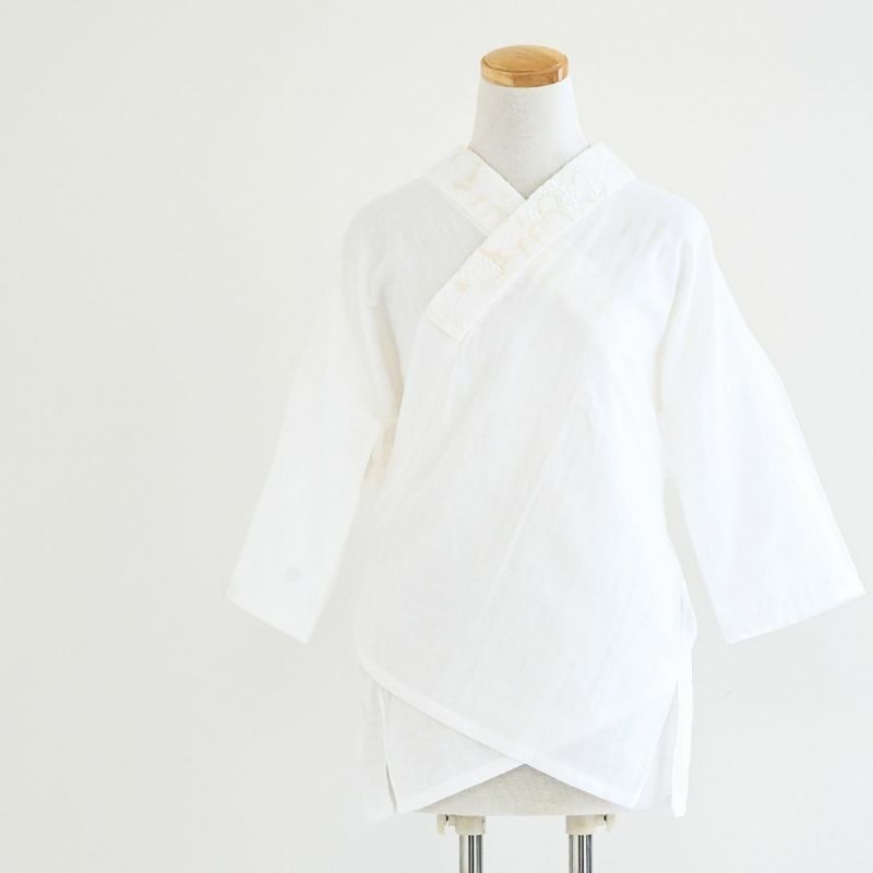 <半襦袢>赤ちゃんWガーゼの大人の半襦袢 - WHITE(筒袖・半衿付き・綿100%・FREEサイズ)
