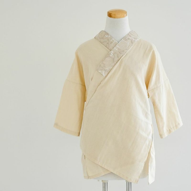 4. <半襦袢>赤ちゃんWガーゼの大人の半襦袢 - Naturalベージュ(筒袖・半衿付き・綿100%・FREEサイズ)