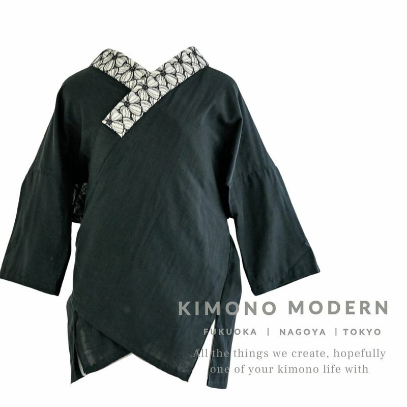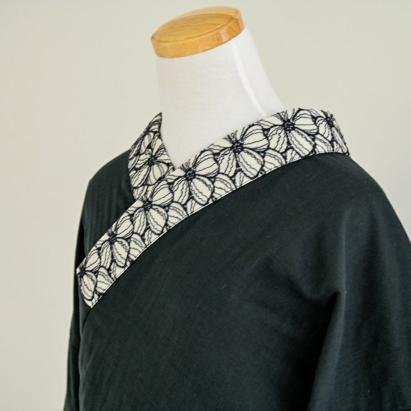 4. <半襦袢>赤ちゃんWガーゼの大人の半襦袢 - BLACK(筒袖・半衿付き・綿100%・FREEサイズ)