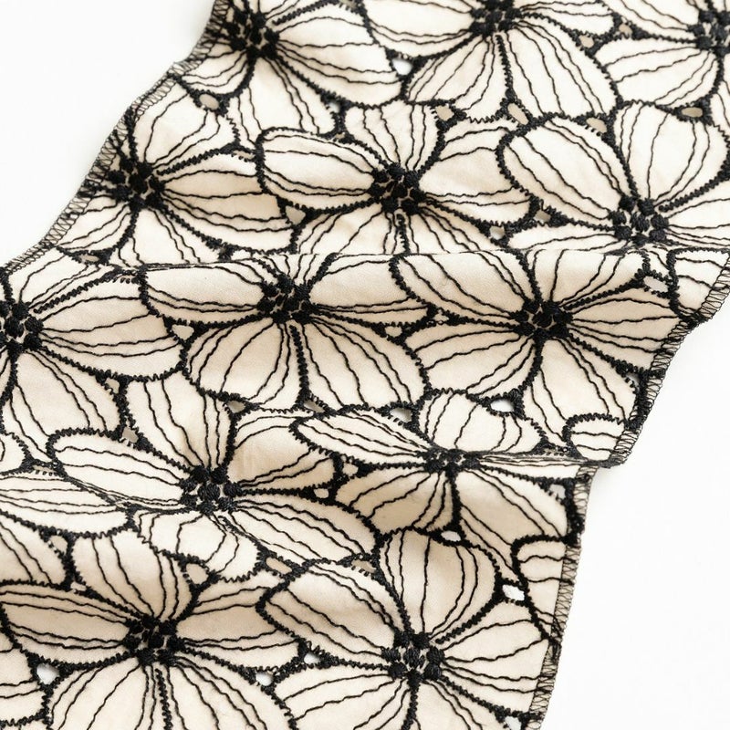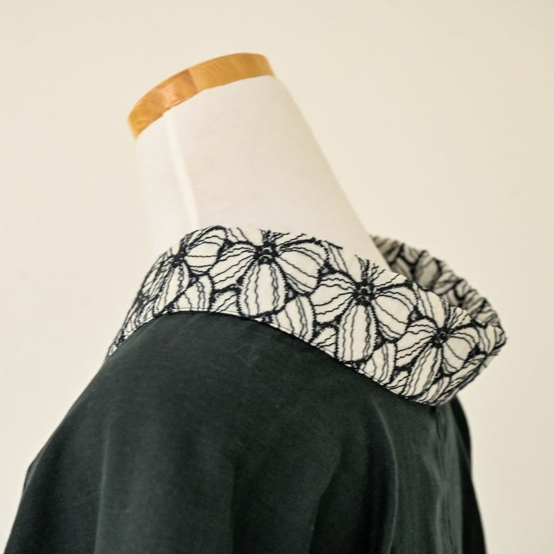 チラリとのぞく着物下着が「白」だと、「下着感」がでて嫌だ…というお洒落キモノ女子のお声を受けて作った、あえての黒。半衿には、KIMONOMODERNのアイコン的アイテム「ハナミズキ」をあしらいました。