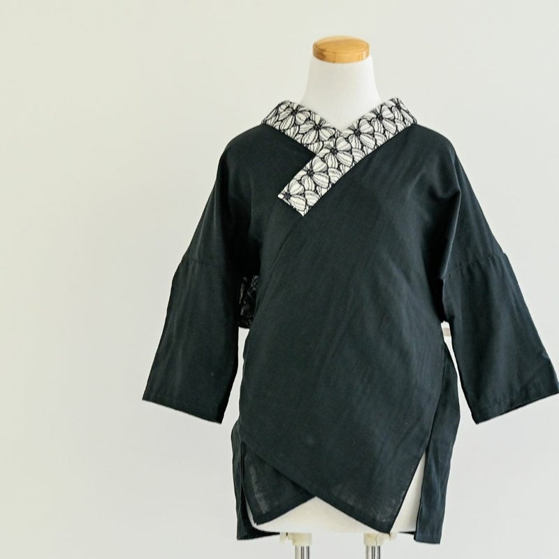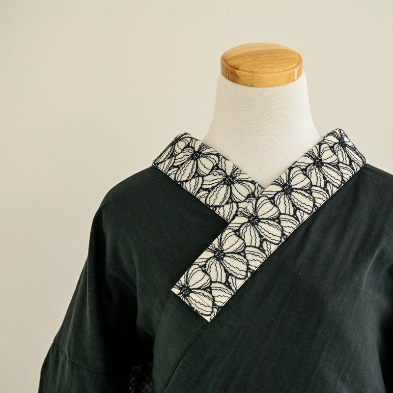 5. <半襦袢>赤ちゃんWガーゼの大人の半襦袢 - BLACK(筒袖・半衿付き・綿100%・FREEサイズ)