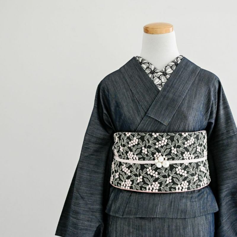 チラリとのぞく着物下着が「白」だと、「下着感」がでて嫌だ…というお洒落キモノ女子のお声を受けて作った、あえての黒。半衿には、KIMONOMODERNのアイコン的アイテム「ハナミズキ」をあしらいました。