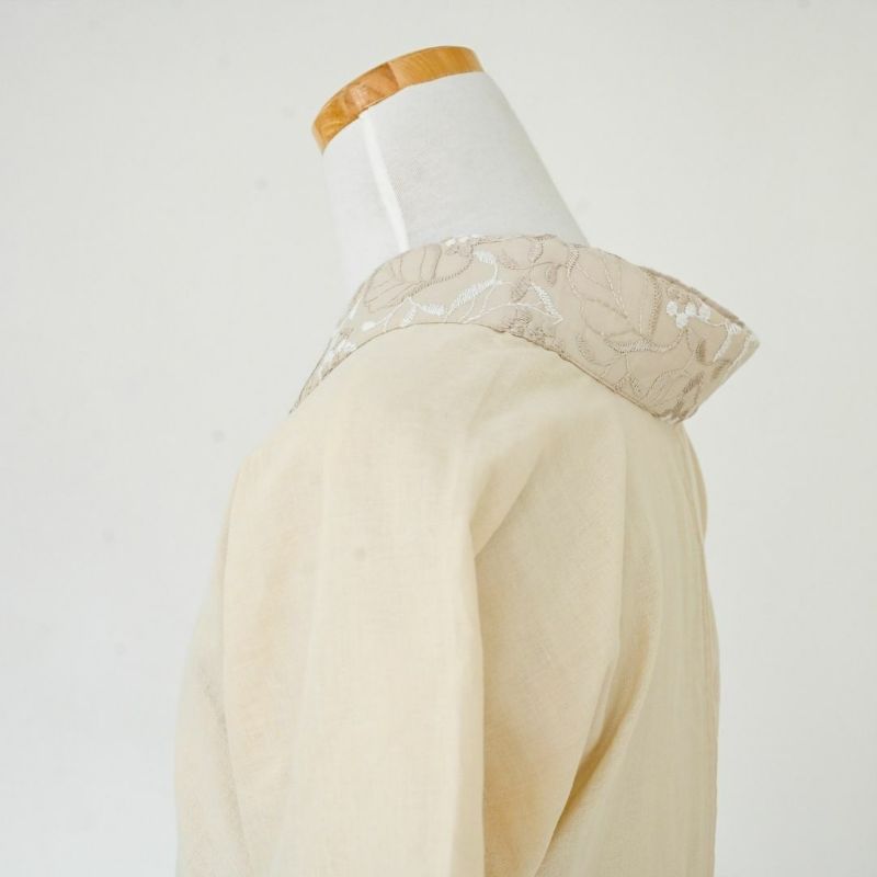 4. <半襦袢>赤ちゃんWガーゼの大人の半襦袢 - Naturalベージュ(筒袖・半衿付き・綿100%・FREEサイズ)