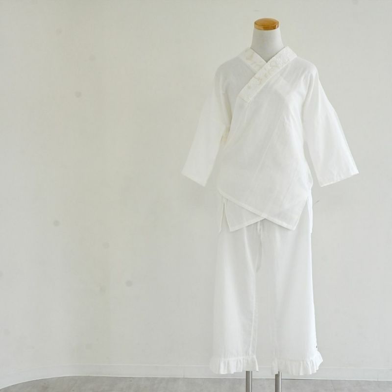 4. 大人の半襦袢+ステテコ2点セット-赤ちゃんWガーゼ(ホワイト|綿100%|ML)