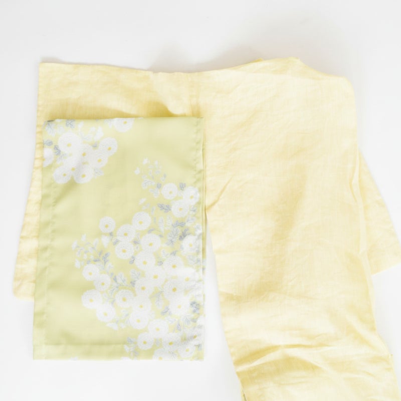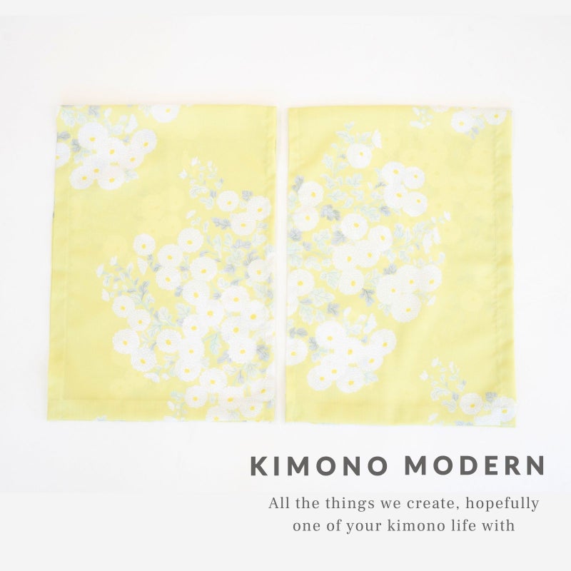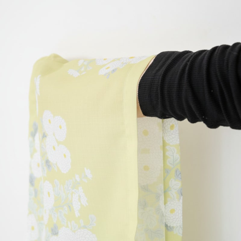 目が覚めるようなジューシーなカナリア色。清楚な小菊柄が、古典的ながらも新鮮で華やかな『きかせ色』に。袖口からチラリと覗かせるだけで、気分まで明るくなる、遊び心たっぷりの大人可愛い替袖です。うそつき袖(替袖)について半襦袢に取り付ければ長襦袢を着用しなくても、袖口からきちんとした見た目を作ることができる、付け替え用のパーツです。特徴・長襦袢なしで着用可能・袖のみ取り外して洗濯できるため、お手入れが簡単・コーディネートに合わせて袖を変えられる使い方お手持ちの半襦袢や肌着に装着し、その上から着物を着用します。袖口から替袖が見えることで、自然な着姿に仕上がります。コーデ上級者のための、おすすめの使い方KIMONO MODERNでは半襦袢ではなく、着物に直接取り付けることをおすすめします。半襦袢は着物よりお洗濯の頻度が高く、お洗濯や合わせる着物を変える時、取り外しの手間が増えてしまいます。着物に直接取り付けていれば、その着物に最高に合う!チラ見せのお袖を常に楽しむことができます。