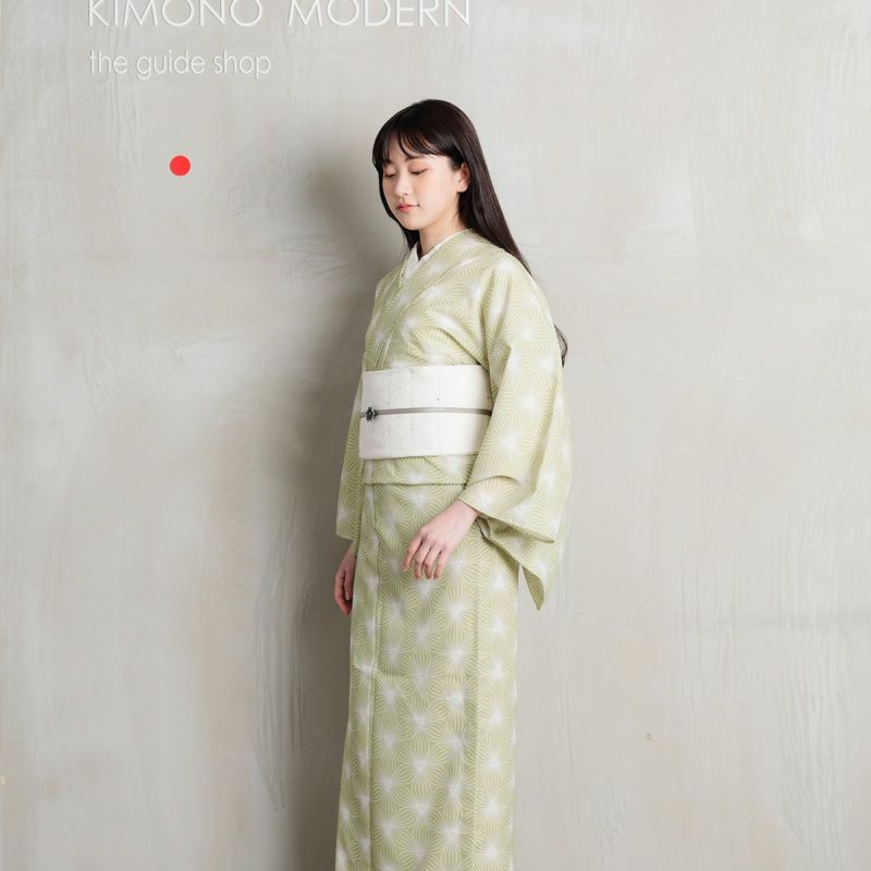 汗をかいてもべたつかず、通気性がありさらりと乾きやすい素材で、夏のお出掛けの強い味方。シワになりにくく、洗濯機OK!&アイロン要らずという、他にないお手入れのしやすさが人気の秘訣。 さらさらとして微かなシャリ感があり、滑らかで軽いので、肩回りの落ち感や裾回りの動きがきれいで華奢見え効果も。中に襦袢を着れば「ポリエステルの単衣の着物」として、5~10月の長い期間で着ることができます。「着物もゆかたも、どっちも着たい!」という、キモノ初心者さんにもオススメ。2wayで長い期間楽しんでいただけます。