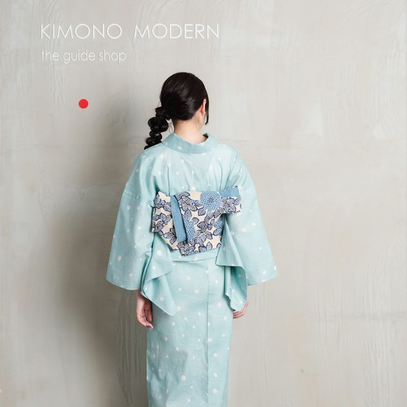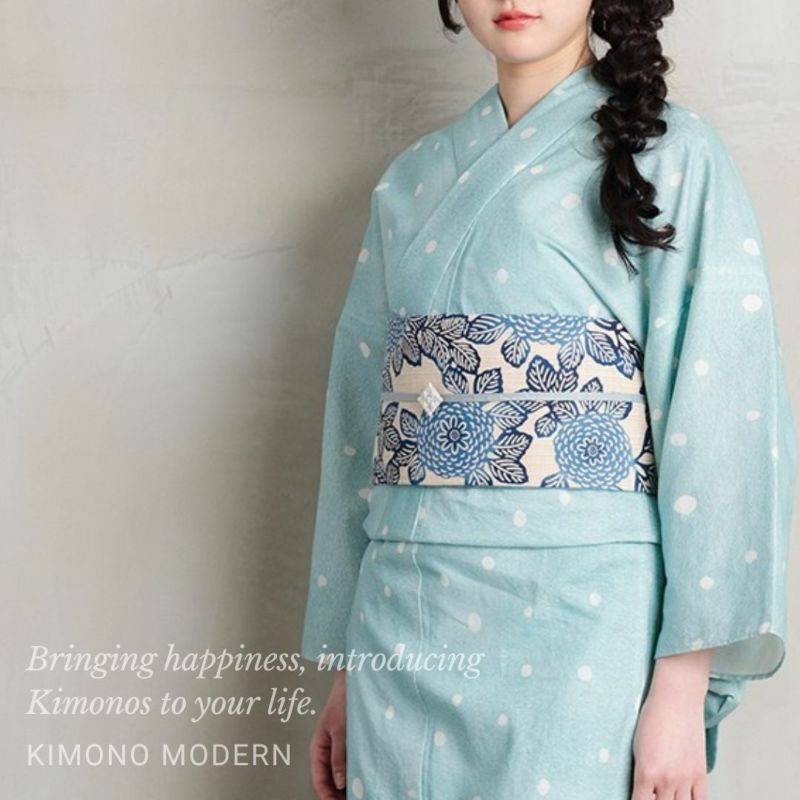 リバーシブル半幅帯ー注染 菊紋kikumon-群青(綿100%)