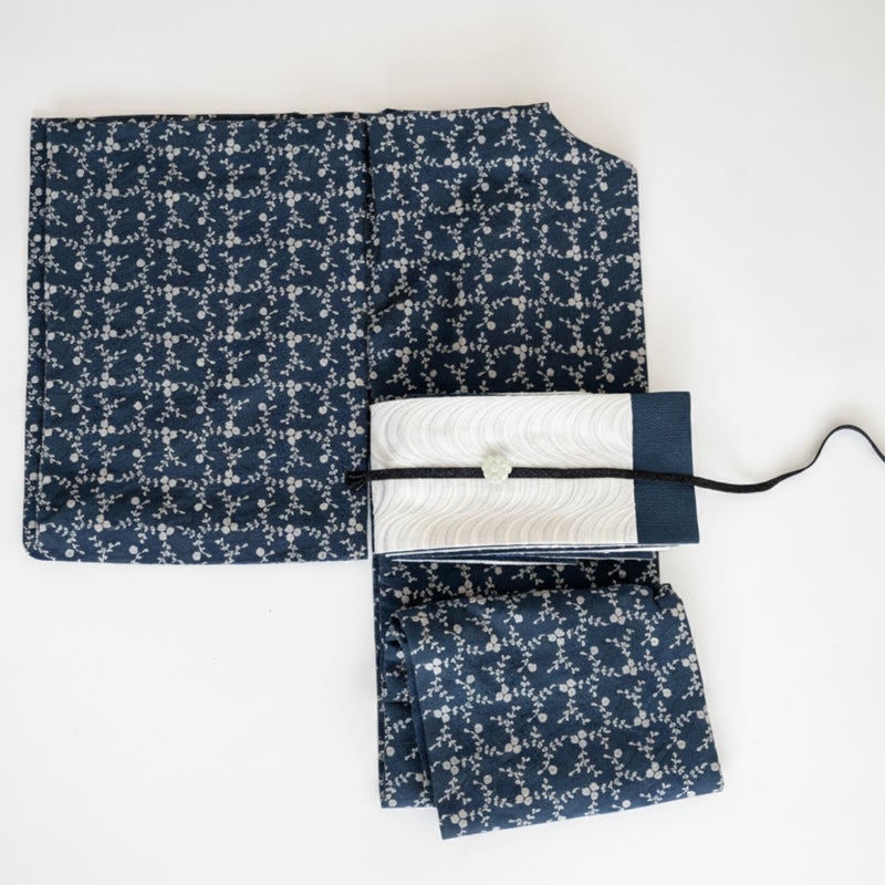 4. <期間限定-MODERN割>刺繍レース着物-ノートルダムの庭園で-BLUE BERRY(綿100%)
