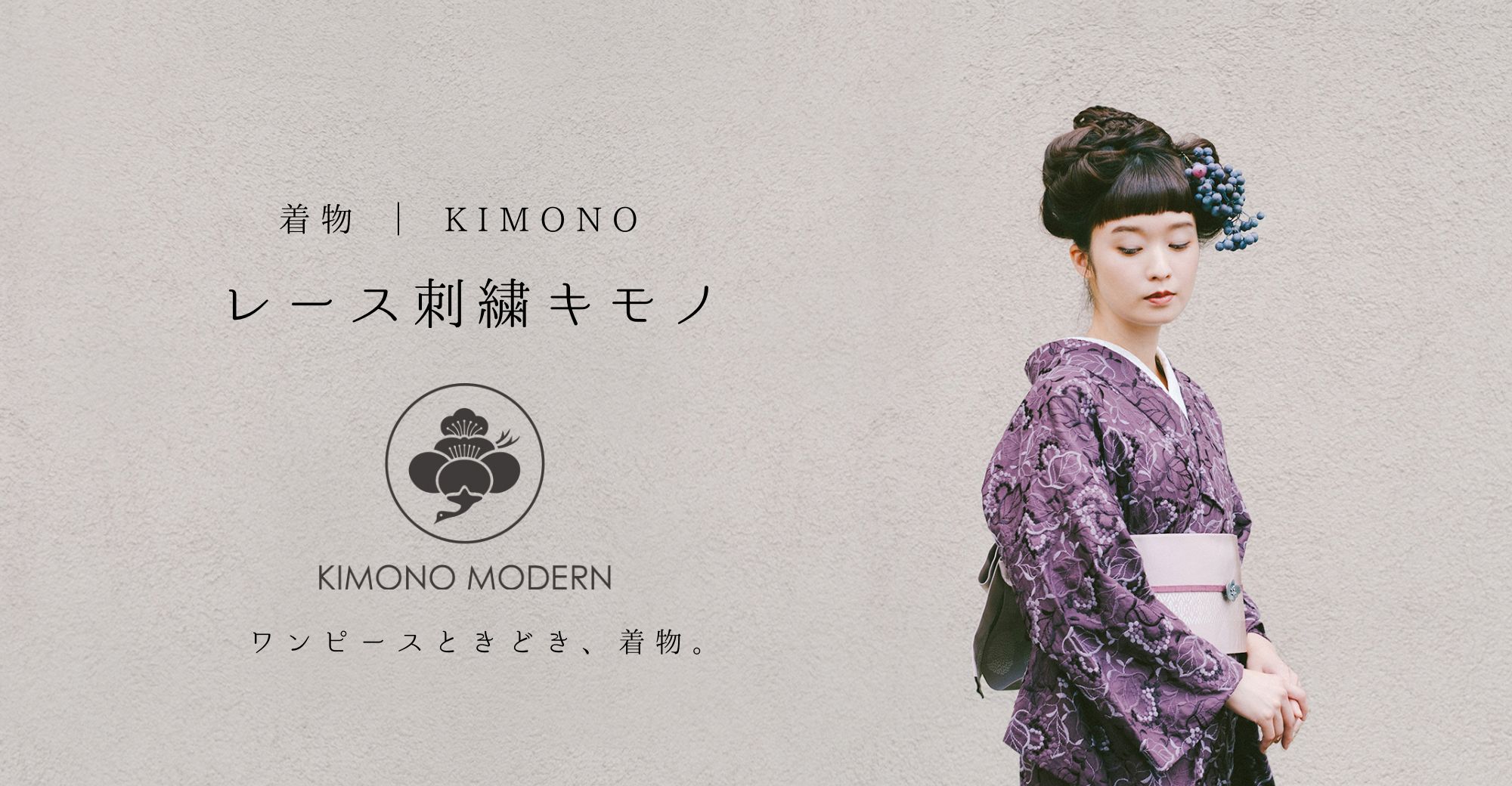 今日はワンピース、あしたは着物。そんな日常が叶う、まるでワンピースのような「レース刺繍キモノ」 裏地のない一枚仕立ての「単衣」キモノだから、盛夏をを除く一年中着れるのもうれしい。