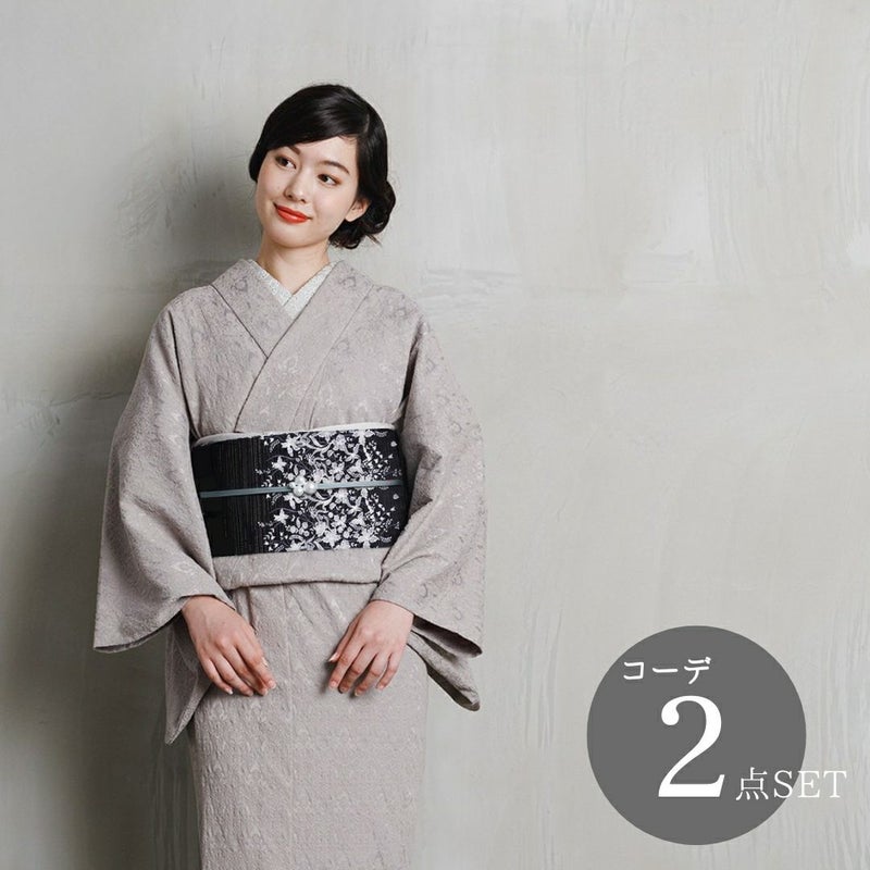 モダンでスタイリッシュなセミフォーマル着物と帯が完成された2点SETで届く!しかも、セミフォーマル~カジュアルまで幅広いシーンで着用OK。