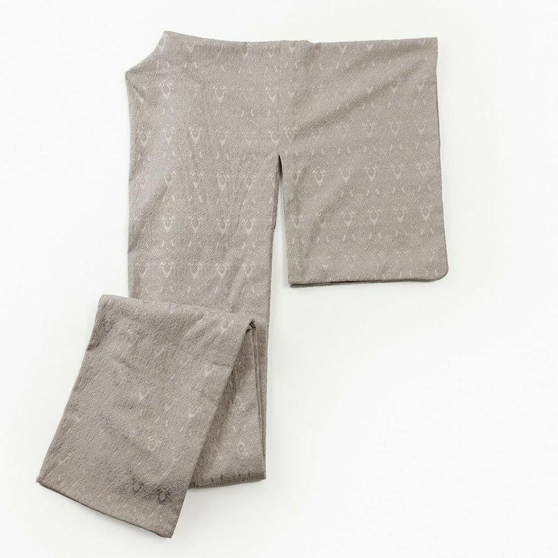 ラグジュアリーなオーナメント柄が浮き出るジャガード生地のキモノは、大人なピンクベージュに思わずときめきます。黒でコーデを引き締めつつも、繊細な柄の帯を合わせ、華奢で繊細な印象も与えます。主張しすぎない、控えめな美しさを引き出すコーディネートです。