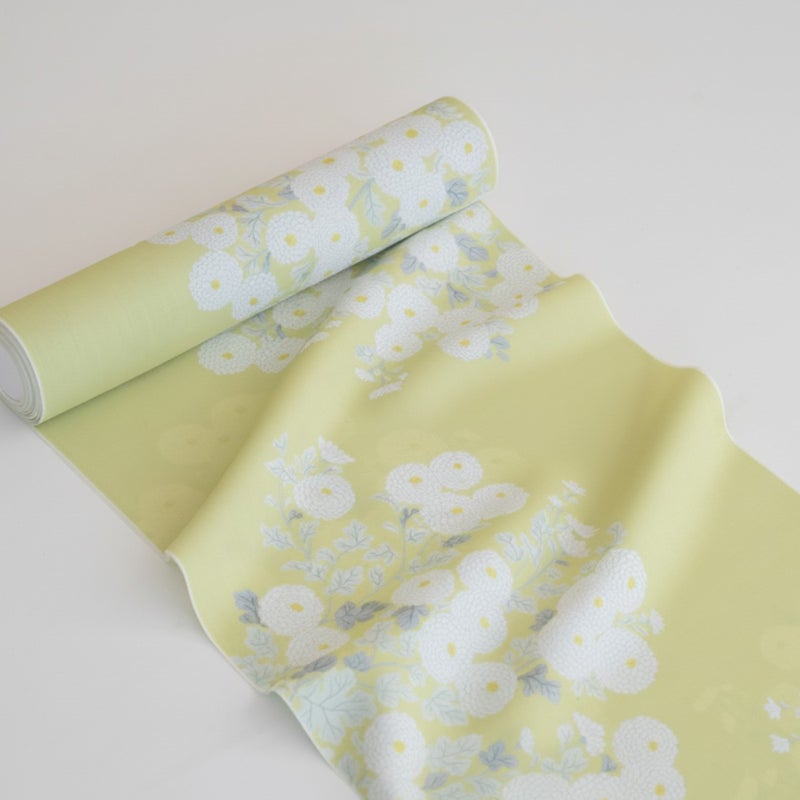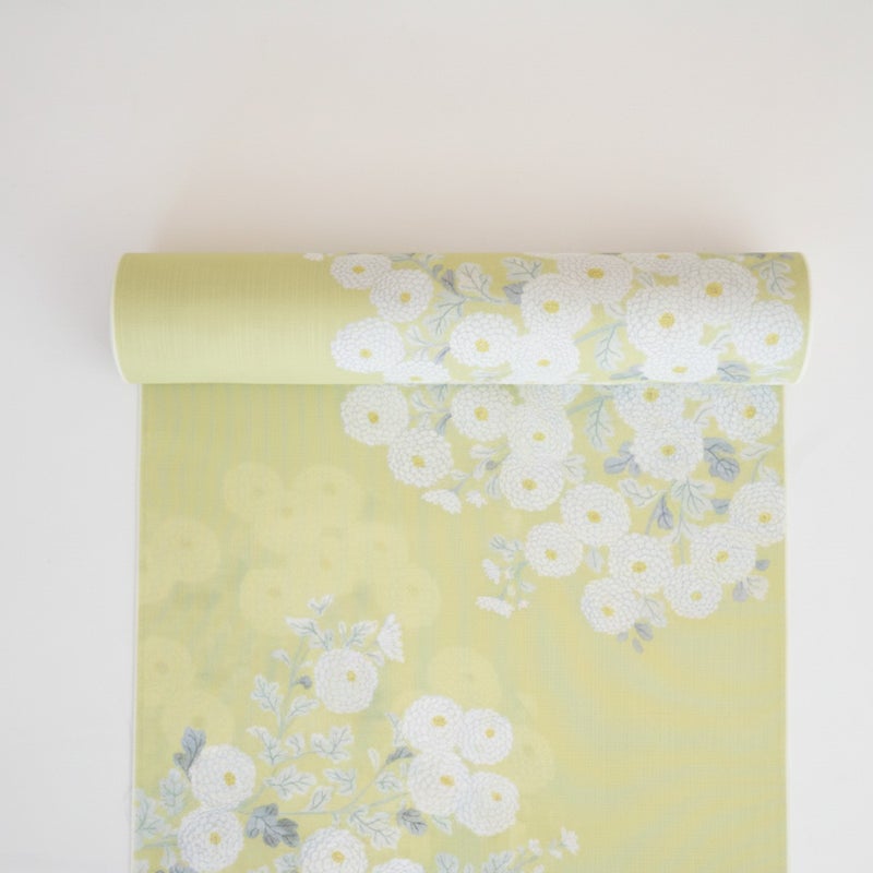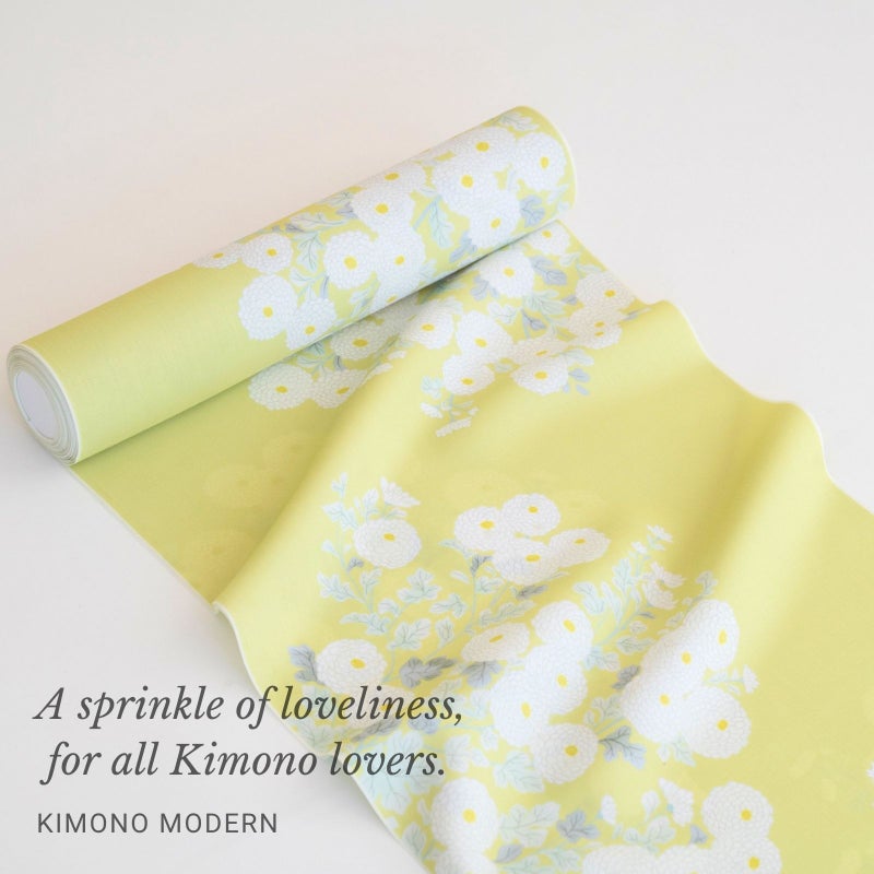 鮮やかなカナリアイエローに、清楚な小菊が可憐に咲き誇る。古典的なモチーフを現代的な色彩感覚でブラッシュアップした、遊び心たっぷりのデザインです。纏うだけで気分まで明るくしてくれる「きかせ色」は、夏の陽射しの下で最高に輝きます。セオαのドライな着心地は、湿度の高い日でも肌に張り付かず、さらりと快適。ご自宅でお手入れできる手軽さも魅力です。可愛らしさと品格を両立した、大人可愛い夏を彩る一枚です。