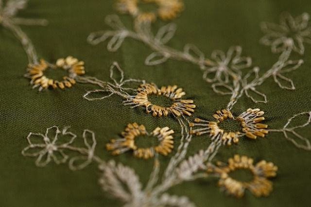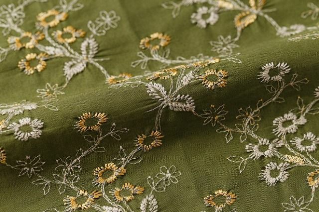 やや黄味がかったグリーンをベースに、アイボリー × yellowの刺繍。イエローベースさんにおすすめのアクセントカラーです。