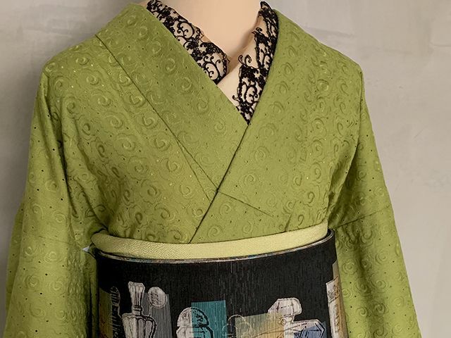 透け感を楽しむために白の半衿がセットになっています。お手持ちのカラー半衿を重ねて透けさせても素敵。アレンジによって、いろんな表情が楽しめますよ。