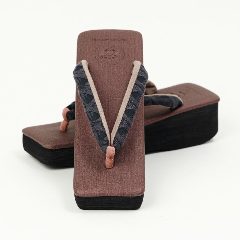 ダークな雰囲気と色気が溢れるスモーキーさが魅力。鼻緒の刺繍色に合わせた配色。