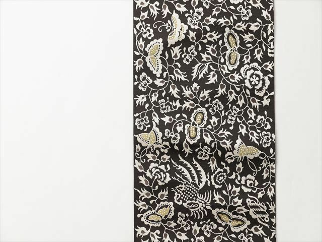 古くに残された更紗文様を復刻させたという、この博多織の名古屋帯。古い時代の意匠なのに、なぜか古さを感じさせずむしろ新鮮な趣を感じさせてくれます。