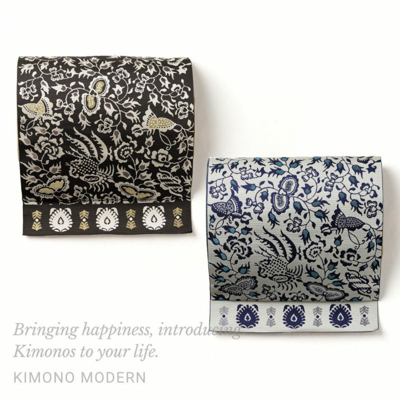 4. 【博多織名古屋帯】更紗文様シルクロード(2色・別送品)