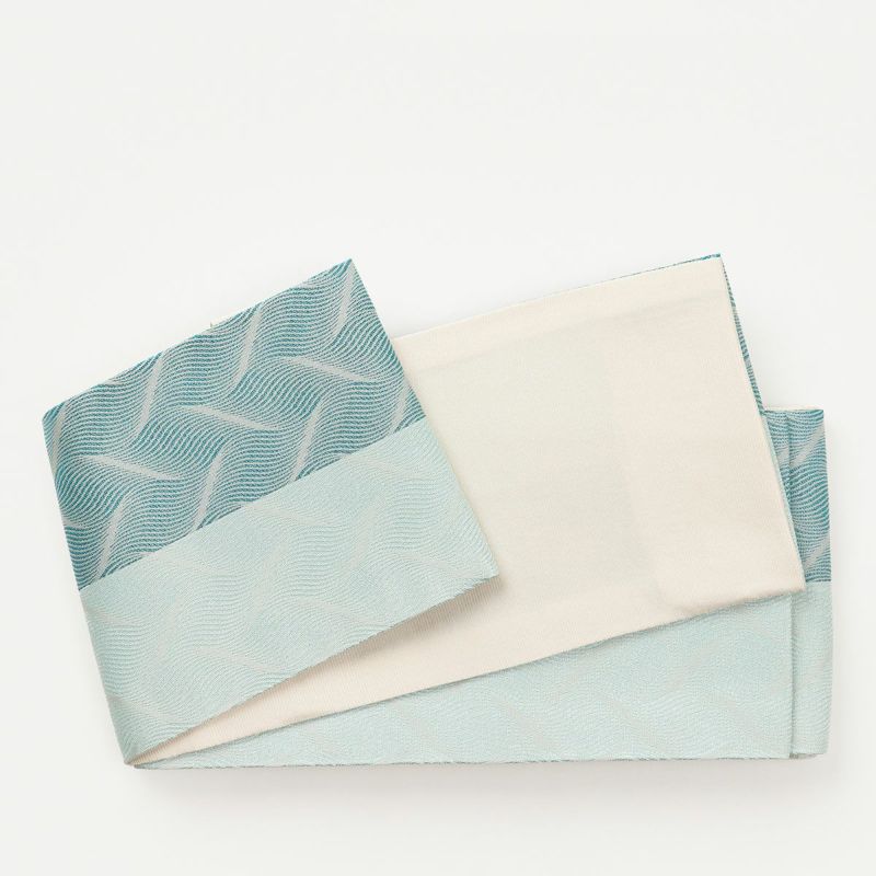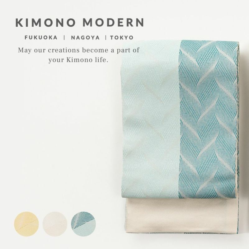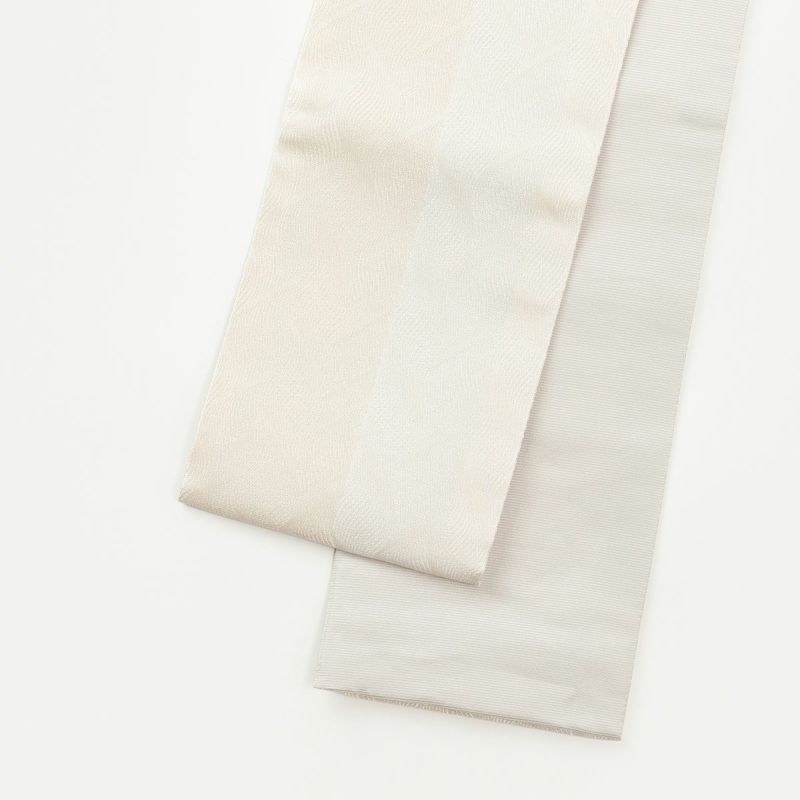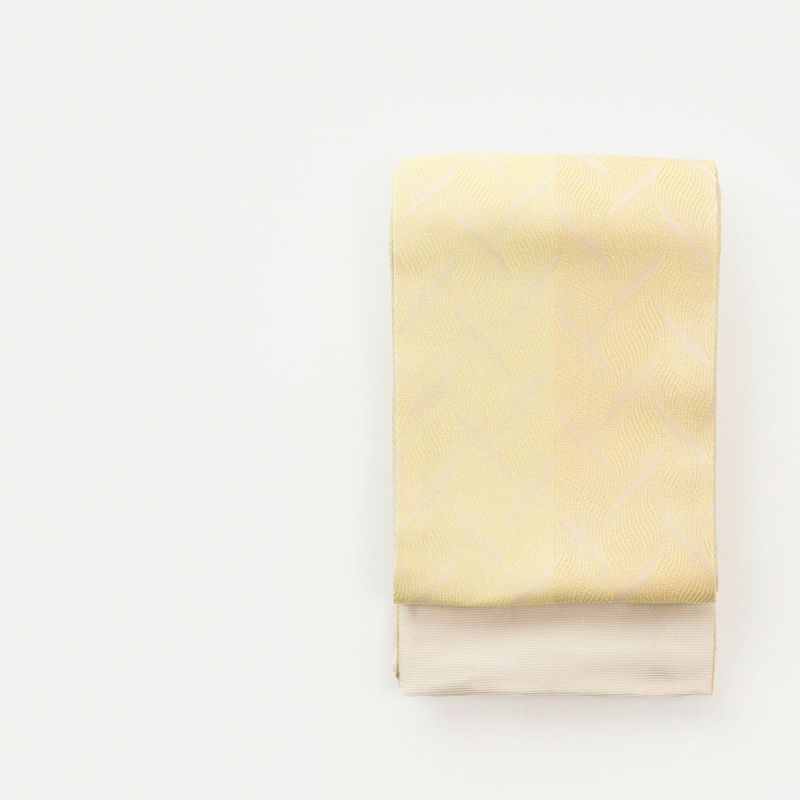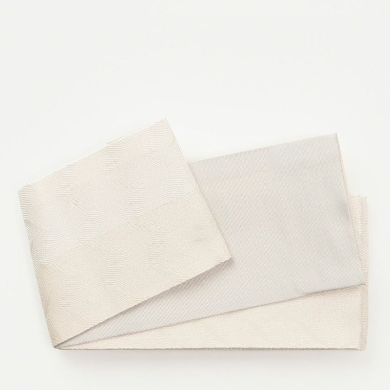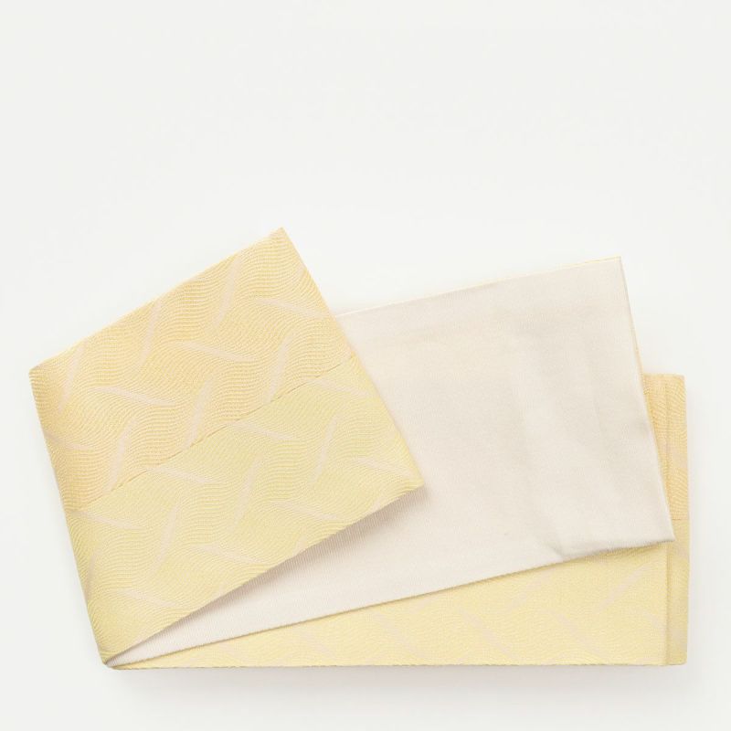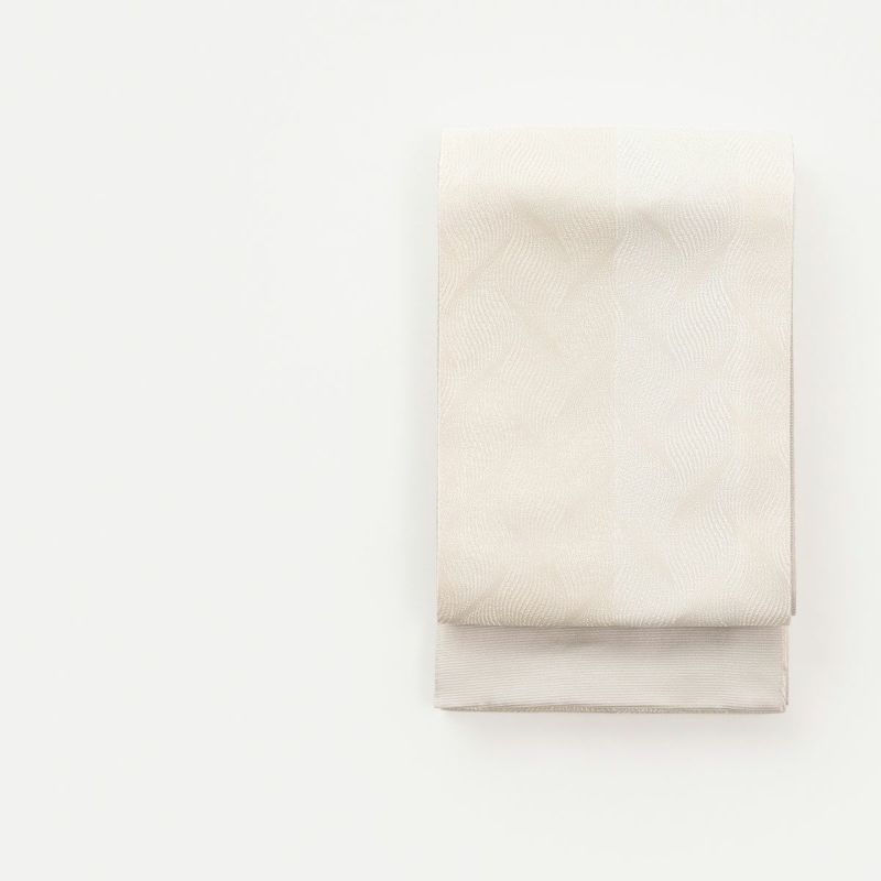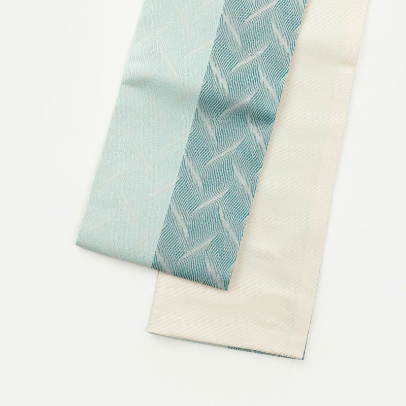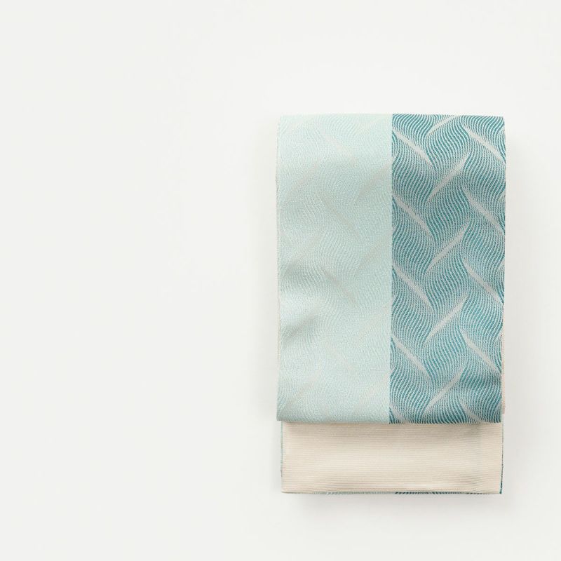さざなみのような華奢な曲線が、光沢のあるバイカラーで表現された美しい半幅帯。柄の出し方で雰囲気が変わり、涼やかで落ち着いた、凛としたスタイルが叶います。