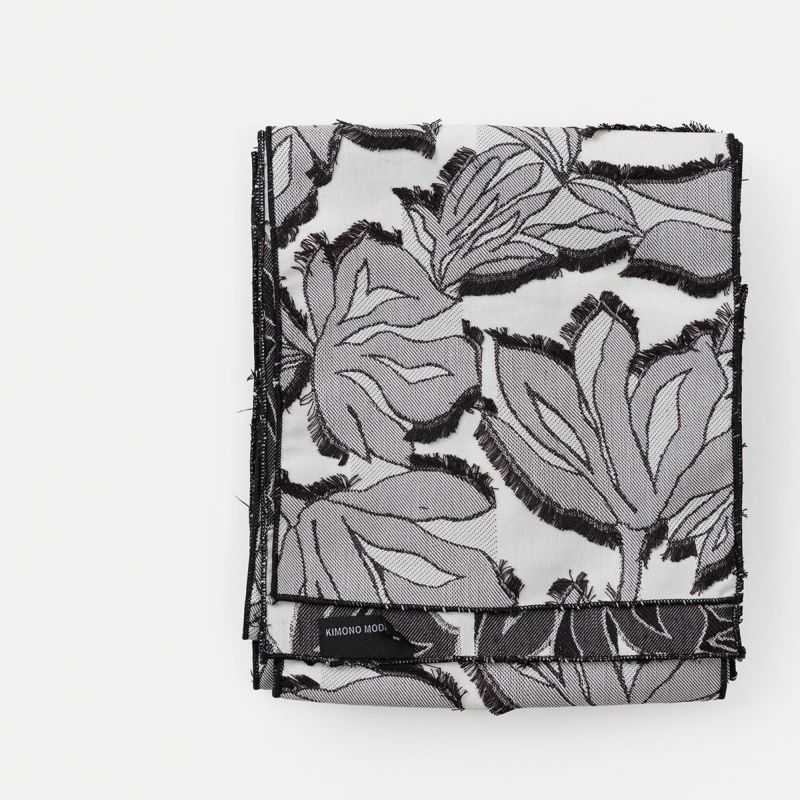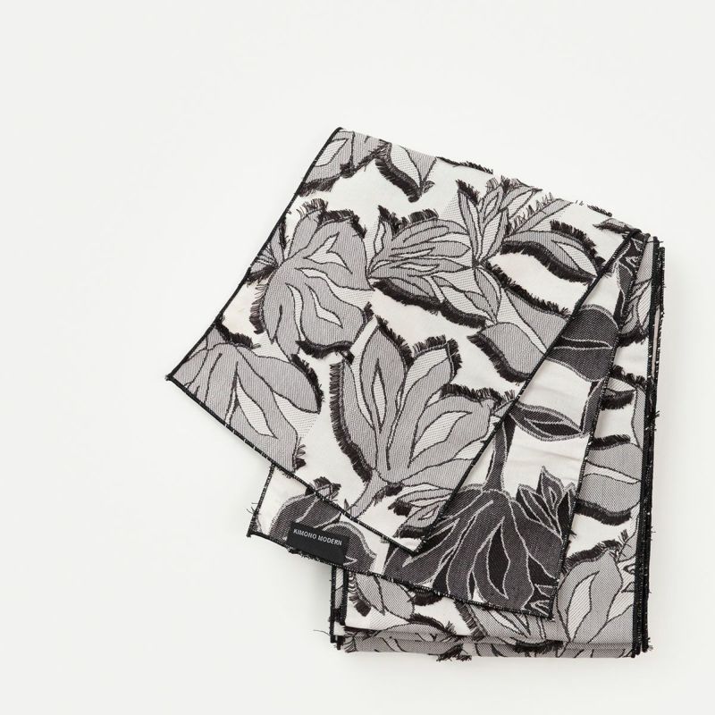 大胆なボタニカル柄が印象的な、オシャレ上級者のための一本。モノトーンなので、いつものシンプルなコーデにもサクッと合わせられるポテンシャルの高さが◎
