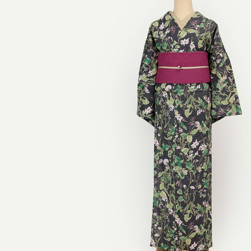 手作りの編み籠をモチーフにした「kago」シリーズ。空気を含んで織り上げたかのような、ふっくらとした質感と軽さ。体に優しく自然とフィットするので、締まりやすく帯結び形もキレイに仕上がります。