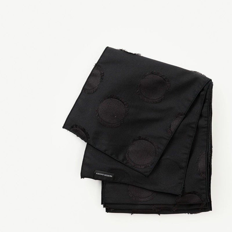 シンプルながらもさりげないPOPさを隠し持つ、漆黒に浮かぶ黒いドット。「帯で遊ぶ」に挑戦するならまず選んでみて欲しい一本。