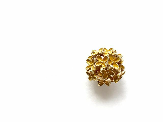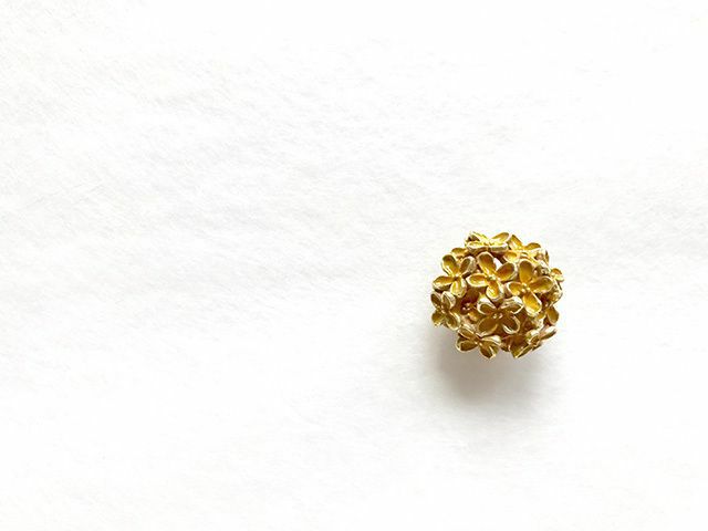 ゴールドの花の内側が黄色に塗られていて、小さいけれどパッと目を引く華やかさです。