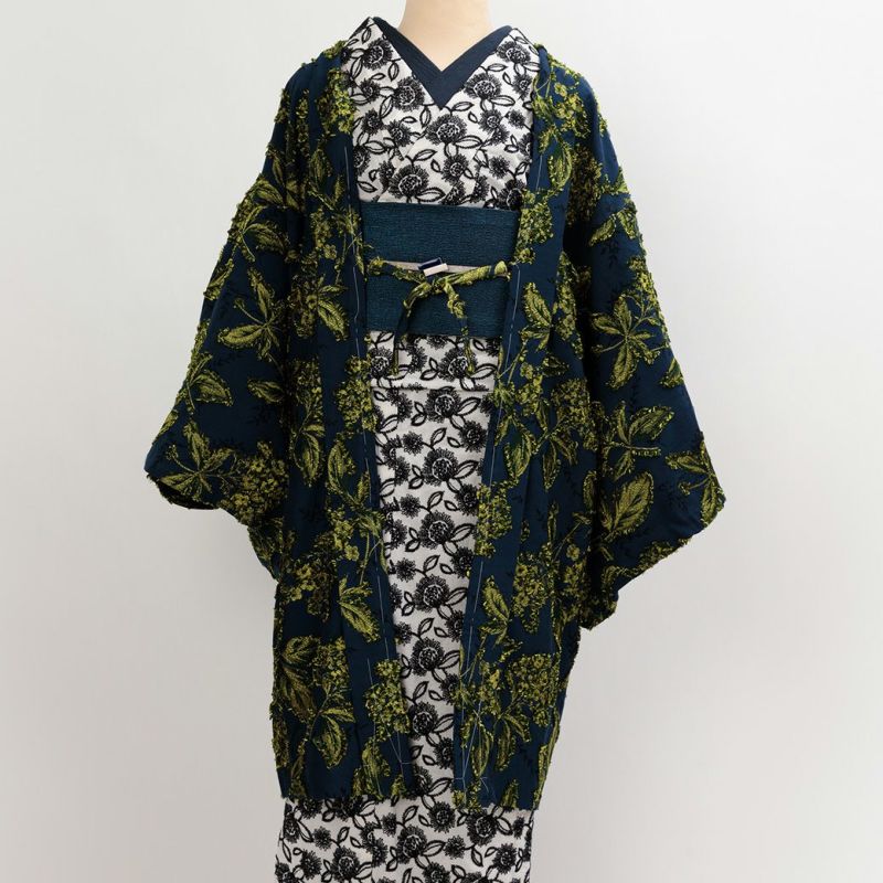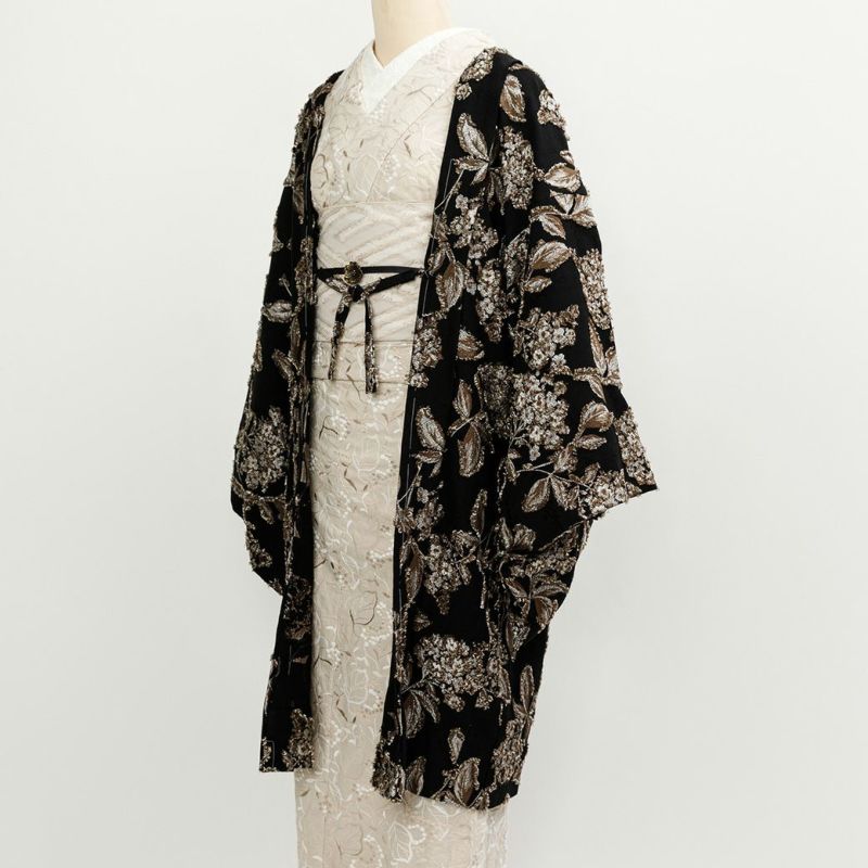 無地のきものはもちろん、ざっくりした紬やデニム、KIMONOMODERNのレースきものとの相性は抜群。パーティーシーンや正絹きものにも。薄羽織とは違い、単衣ながらも袷羽織と同じくらいの防寒性と安心感があります。