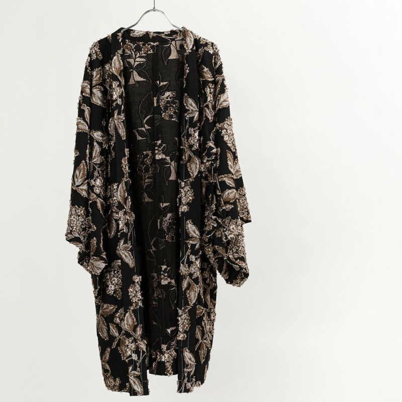 たっぷりとした重厚感と、うっとりするほどの光沢感、新作カットジャガードシリーズ【woooa】[ウーア]。羽織るとしっとり体に馴染み、動くととドレスのように広がる今までにない、高級感あふれるハオリです。