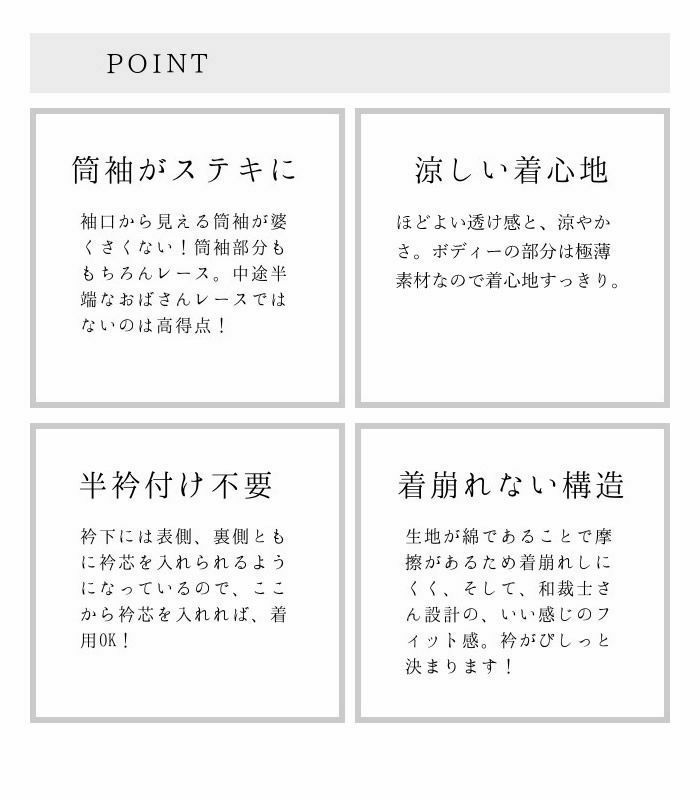 他の画像を見る <ワンピ襦袢>COLORSーアラベスク(2色・M / L・ポリエステルxレーヨン) 東京店展示中 10%OFF 定価 ¥ 21,780 のところ 特別価格 ¥ 19,602 税込 カートに入れる お気に入りに登録する