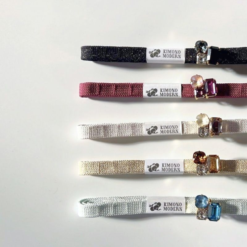 ある時から「スワロフスキーの・・・」と謳うことができなり、コロナに入って、スワロフスキーJAPANが撤退したことにより、同社のパーツを手に入れることが困難に。またおそらくはKIMONO MODERNが業界で一番最初に「スワロフスキーの帯留」をリリースしたのだけど、気づけばいろんなところで出回ってしまったのもあり、惜しまれつつもフェードアウトしてしまった商品でした。