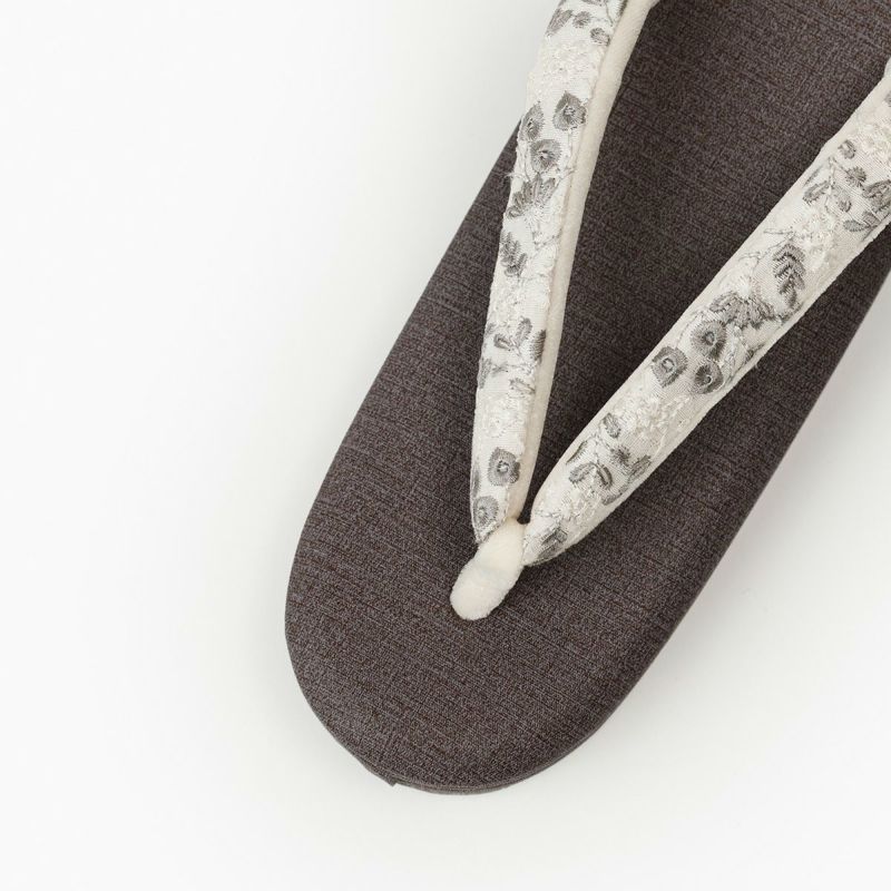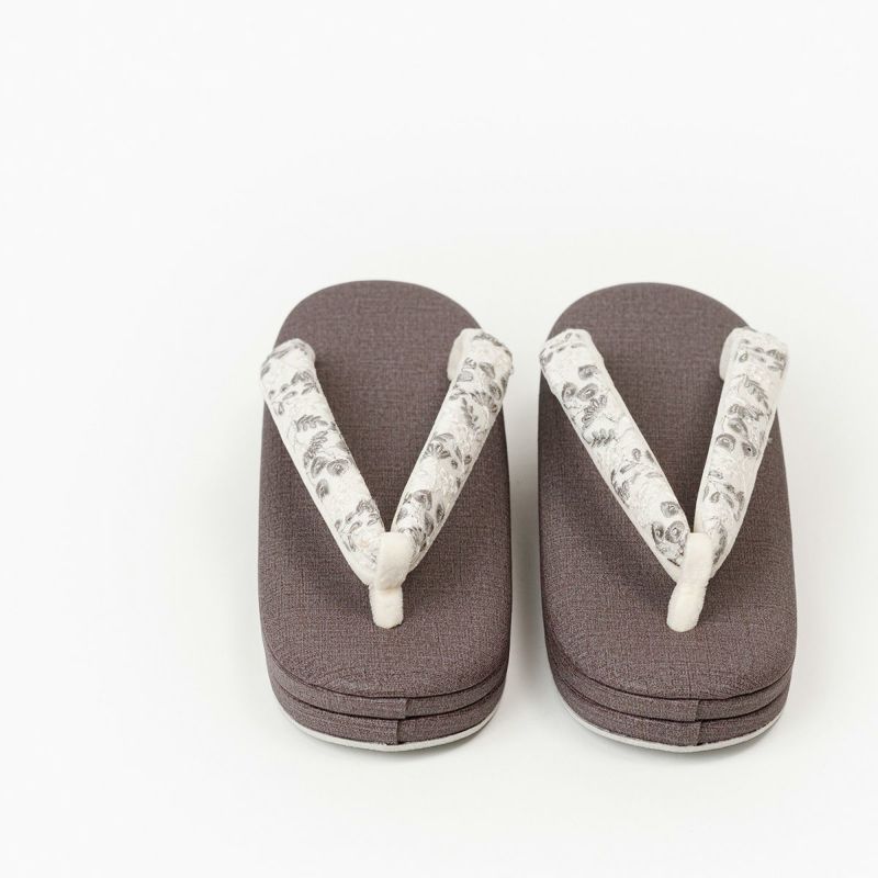 知的で落ち着いた印象のブラウンが鼻緒の華やかさを優しく引き上げ、いつものスタイルをエレガントに仕上げます。