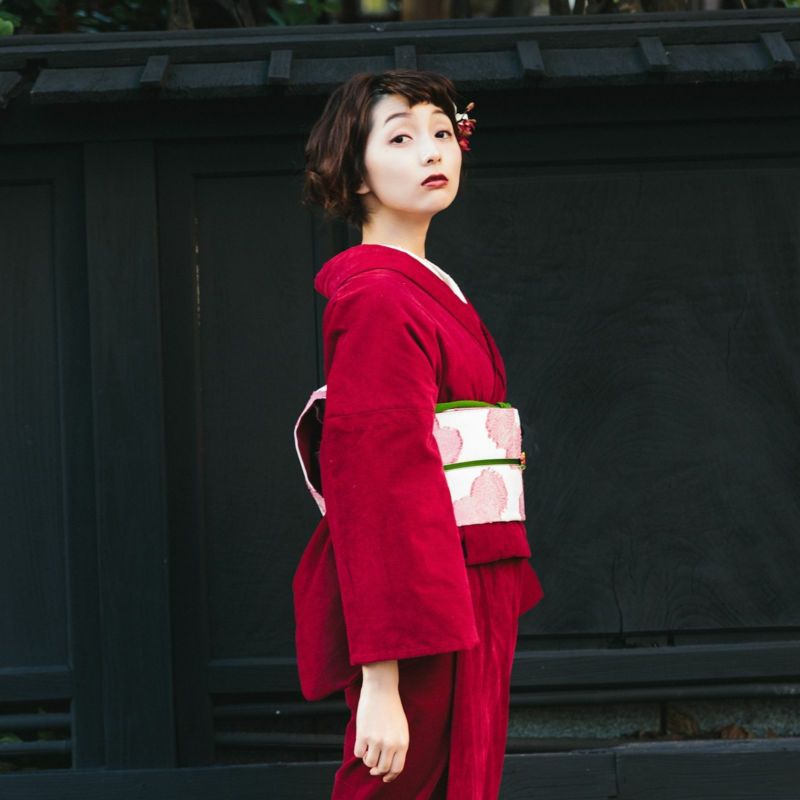 <着物>ドラマチックなコーデュロイ着物(漆黒・綿100%)