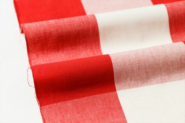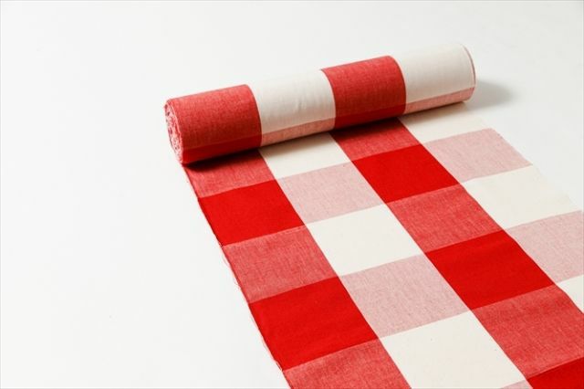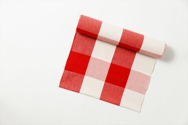 日本のおめでたいカラーと言えば、そう、紅白。紅白を大きめチェックにした、キュートでビビットな反物の登場です。