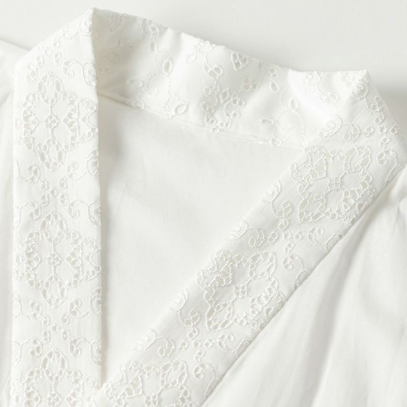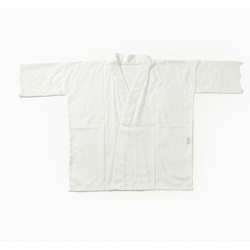 衿や筒袖部分にエスニック&エレガントな刺繍のスカラップ レースをあしらい、まとうだけで気分♪上向き、イロチ・上下で揃えたくなるステキシリーズです。