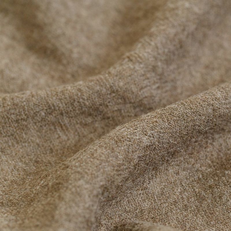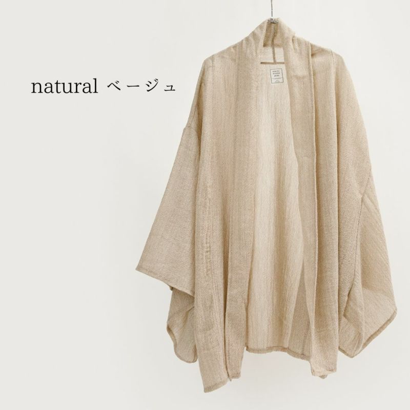 ウールガーゼ(ウール100%)で薄いのに、意外と暖かいという嬉しいギャップ。細めの糸で編まれたザックリした風合いに、ふんわり軽くてやさしい手触り。それでいて ストン、と程よい落ち感と美しいドレープが、カジュアルにもきれいめにもマッチします。