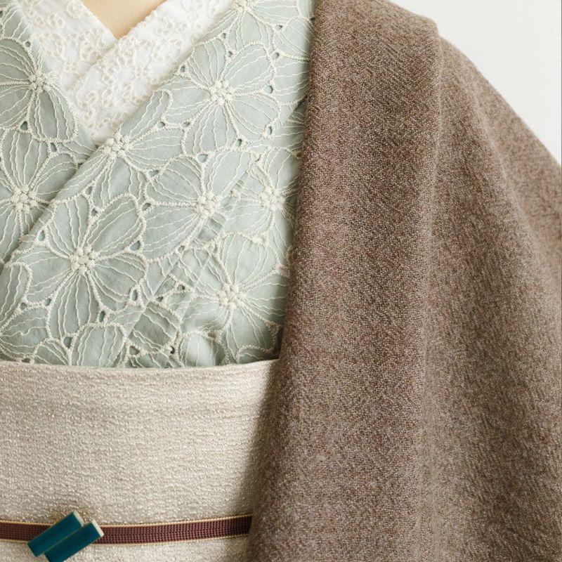 春や秋、風が吹くと少し肌寒い。夜になったらちょっと冷える、そんな時。冬のコートを昼間に持ち歩いたり着ていくには見た目も悪いし、なにより汗をかいてしまう・・・そんな微妙な季節を快適にする、スプリングコート的な羽織もの。ちゃんとあったかいのにふんわり軽め。ありそうでなかった「着物×カーディガン」という新しいカタチ。