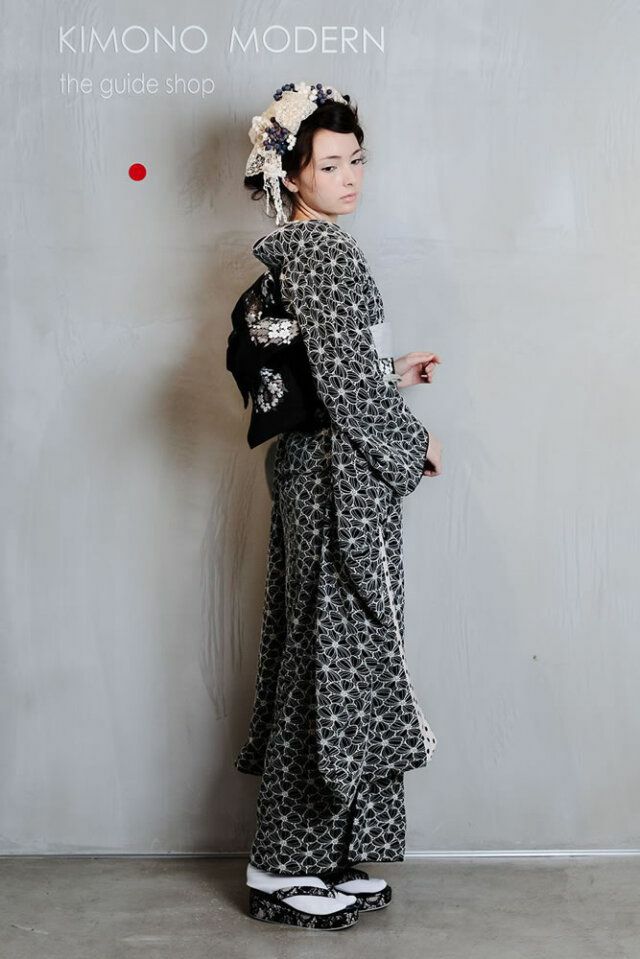 ・レース着物 ハナミズキ 黒曜石(ポリエステル100%) ・兵児帯-花玉 黒(絹100%) ・長襦袢 (ポリエステル100%) ・伊達衿 (二越ちりめん ポリエステル100%)